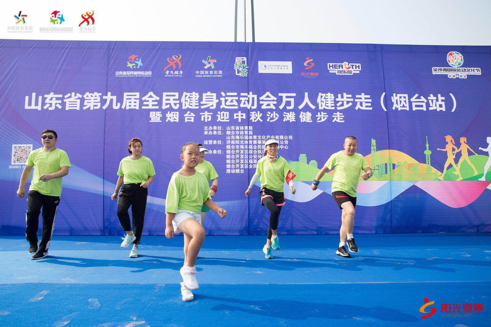 中国体育彩票”山东省第九届全民健身运动会万人健步走(烟台站)暨烟台市迎中秋沙滩健步走活动是由山东省体育局主办、烟台市体育局承办、烟台开发区教育体育和卫生健康局、烟台开发区宣传群团部、山东海乐福体育文化产业有限公司协办,北京世奥中星国际体育文化发展有限公司、搜动烟台推广。